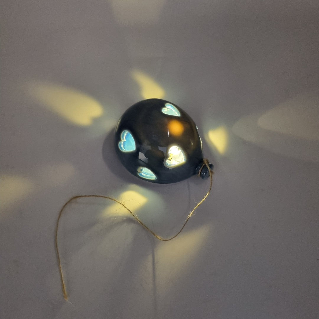 - palloncino con luce led (batterie incluse) in ceramica blu (10 cm).