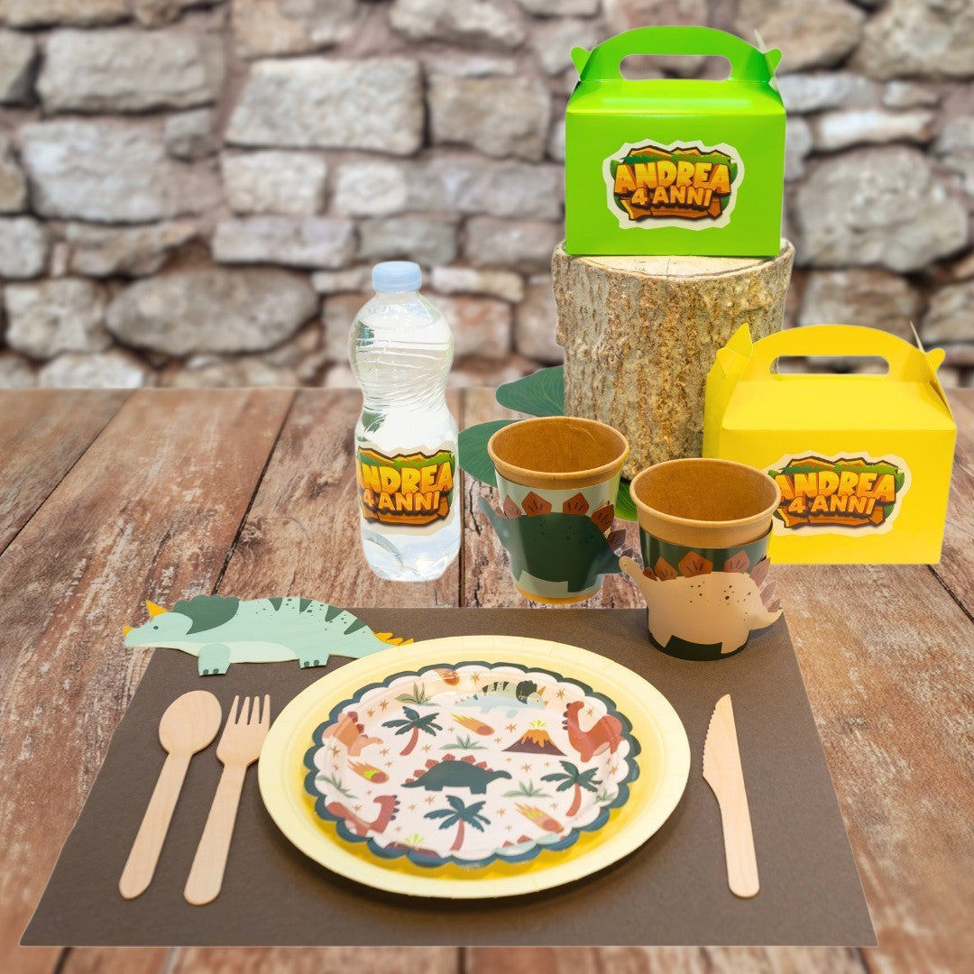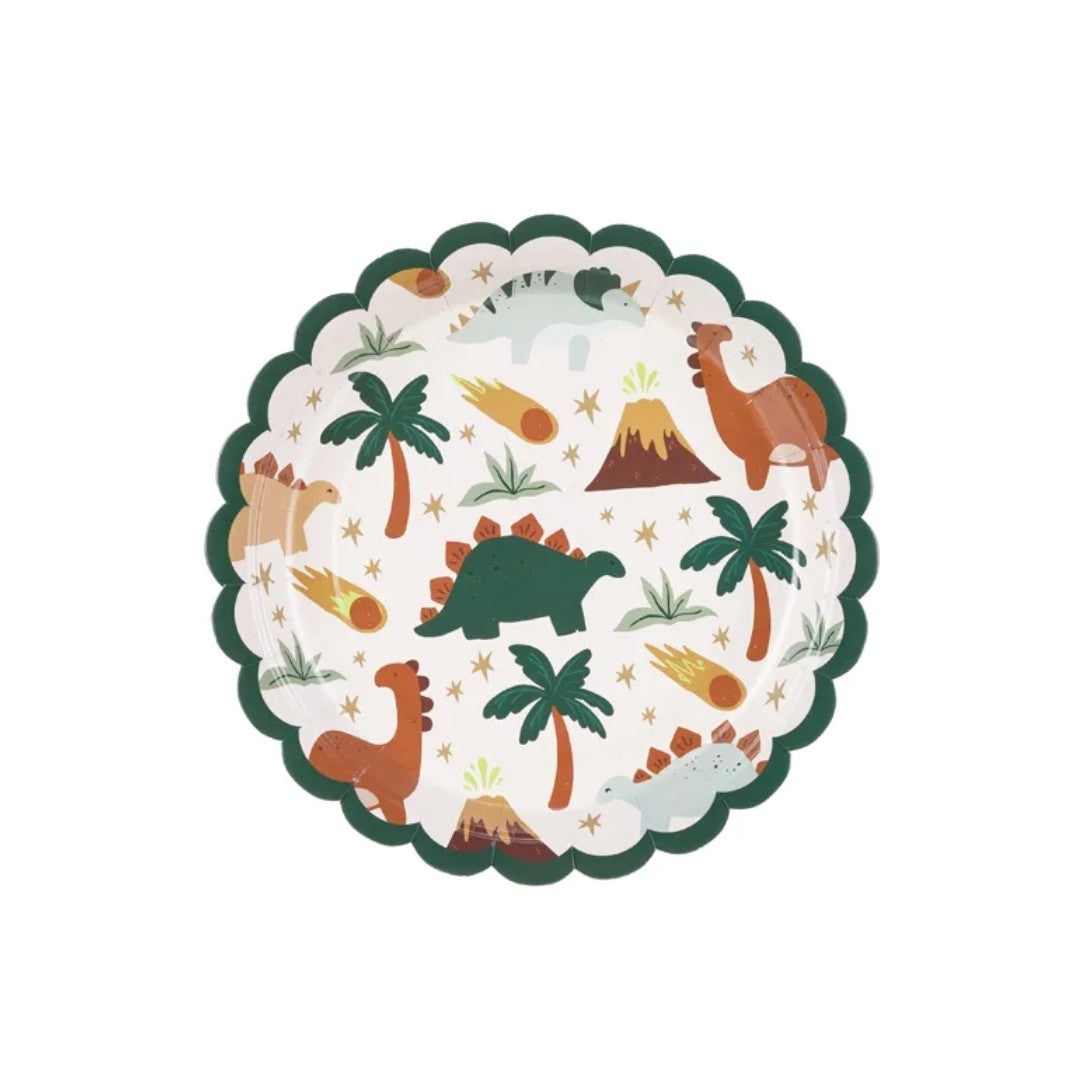 Confezione da n. 6 pezzi di piattini da dolce, tema dinosauri, in carta.