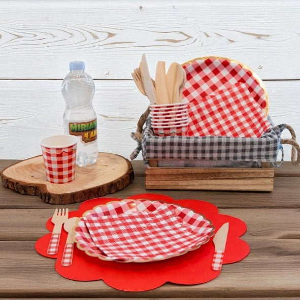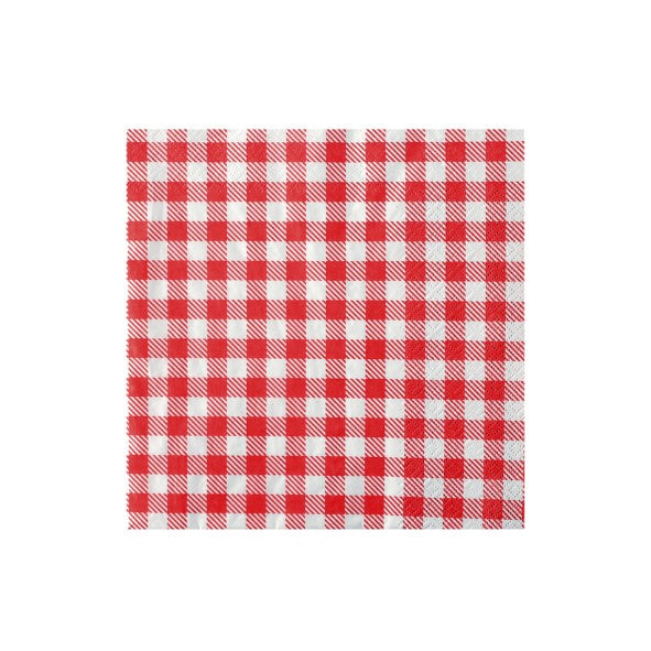 confezione di tovaglioli da 25 pezzi, in carta a fantasia quadretti rossi.