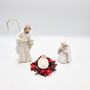 Sacra Famiglia, in resina, più mini ghirlanda rossa.