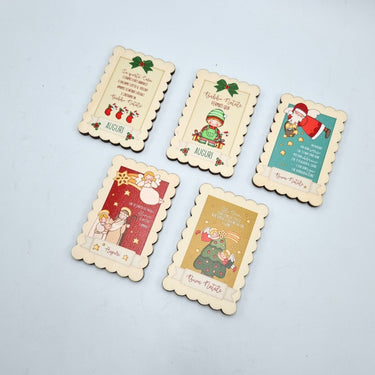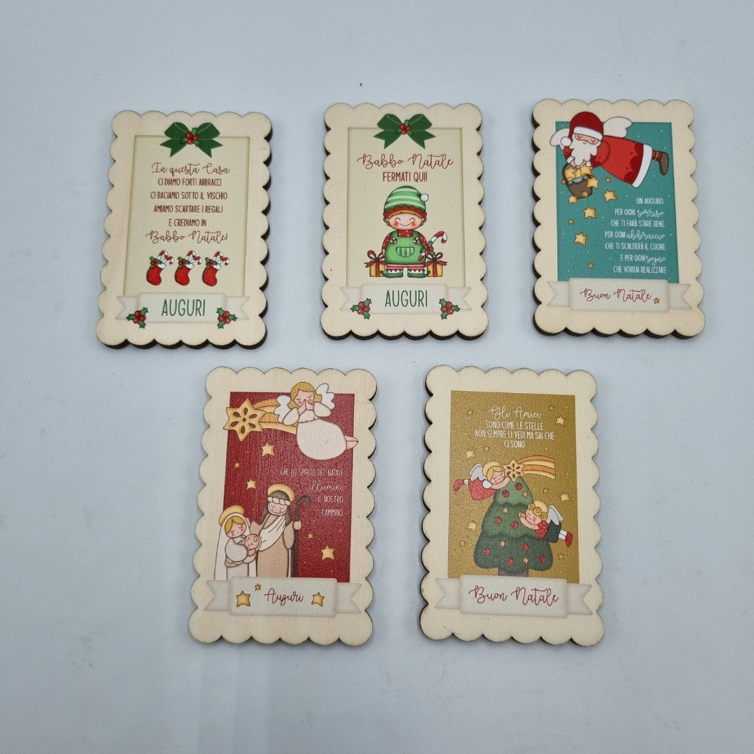 Set 5 magneti natalizi in legno, made in Italy (10 x 6,5 cm).