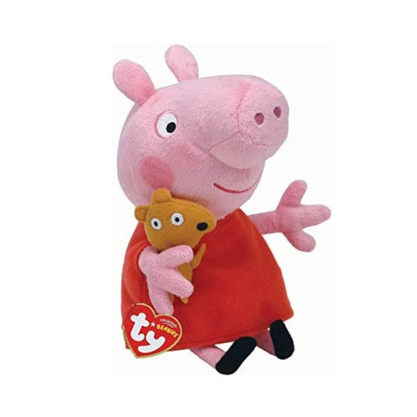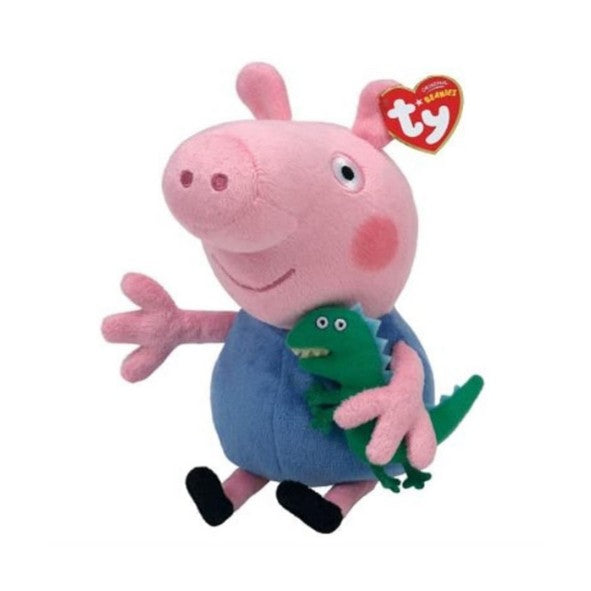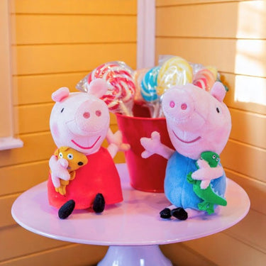 Coppia di peluche da 20 cm Peppa Pig e George, ideali come decorazione per tavolo festa a tema e poi da regalare alla festeggiata o al festeggiato.