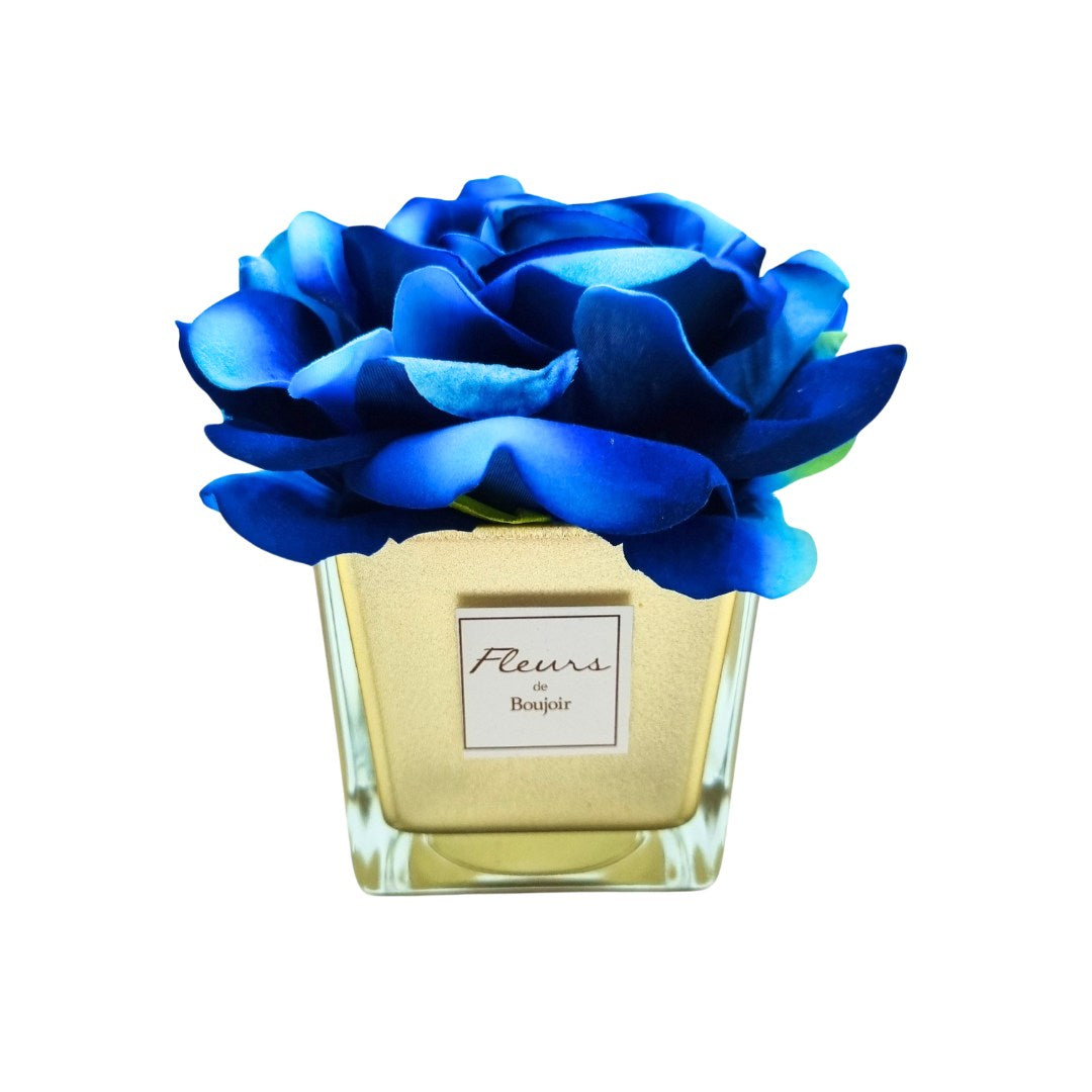 Diffusore di profumo, Fleurs de Boujoir, Rosa colore Blu, Vaso dorato