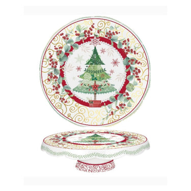 Alzata natalizia Wald  porcellana con decalco albero. Con gift box.