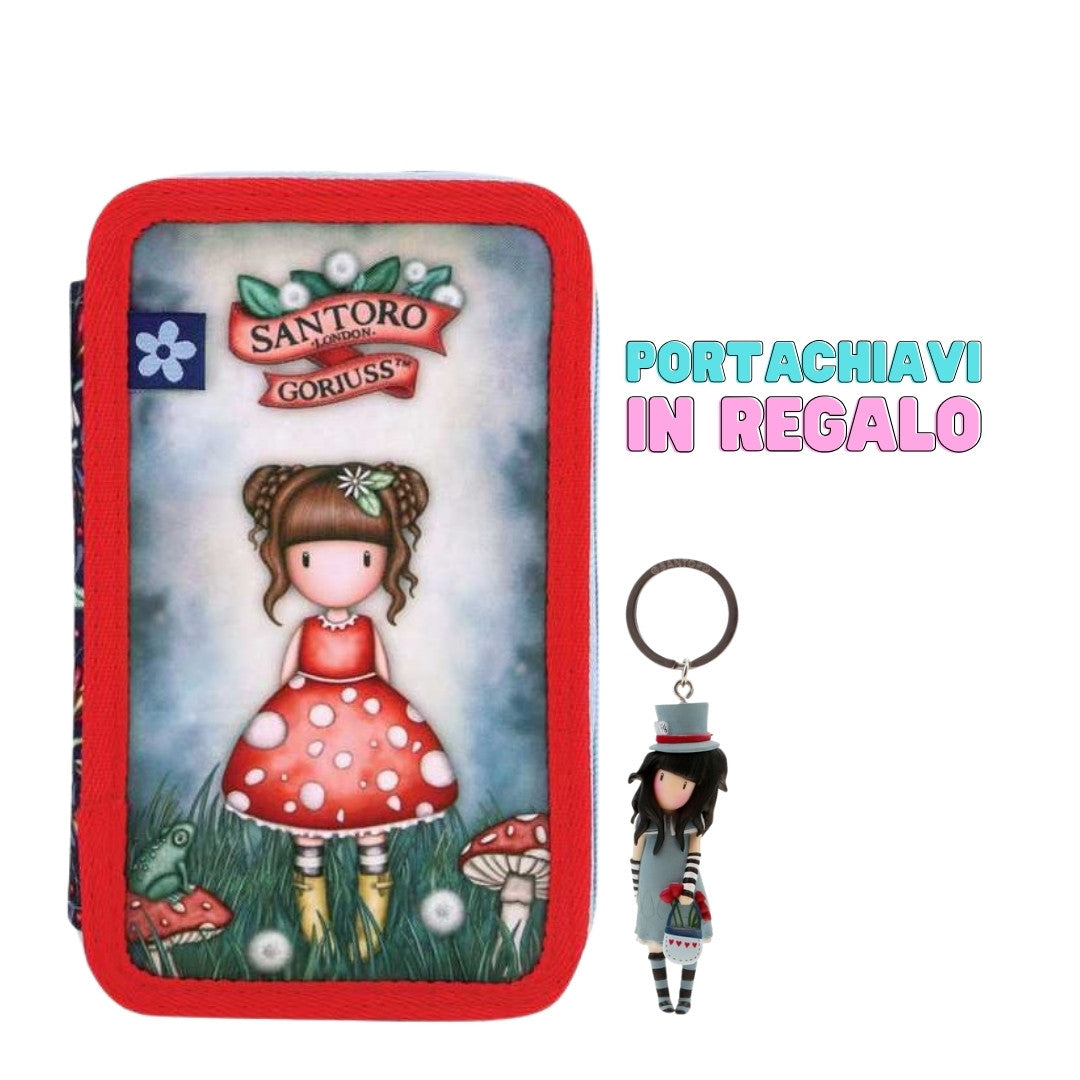 Astuccio 3 zip completo "Little Mushroom" con portachiavi in regalo - Santoro Gorjuss