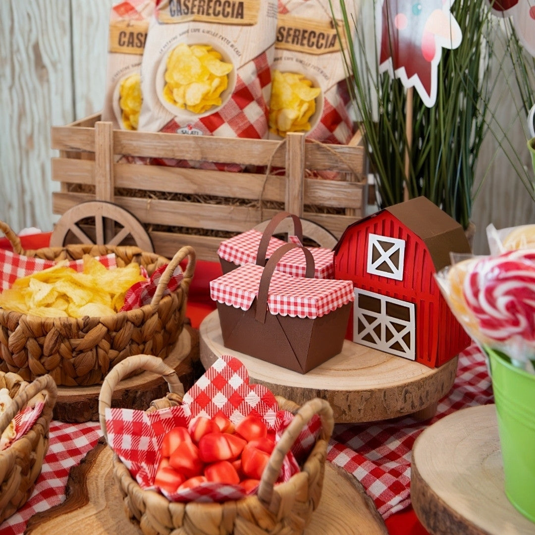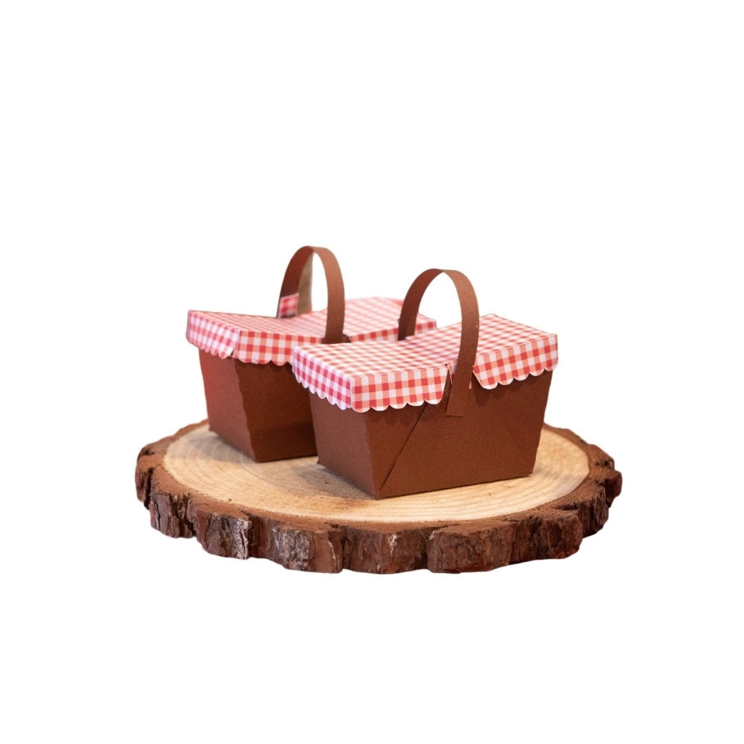 Cestino pic-nic in cartoncino ideale per contenere caramelle o cioccolatini. Interamente realizzato a mano.