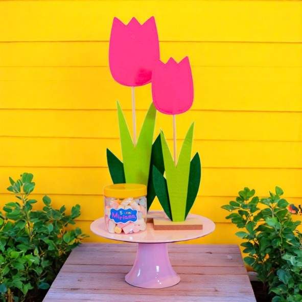 Coppia di fiori in pannolenci colori assortiti rosa, fucsia, giallo o celeste.