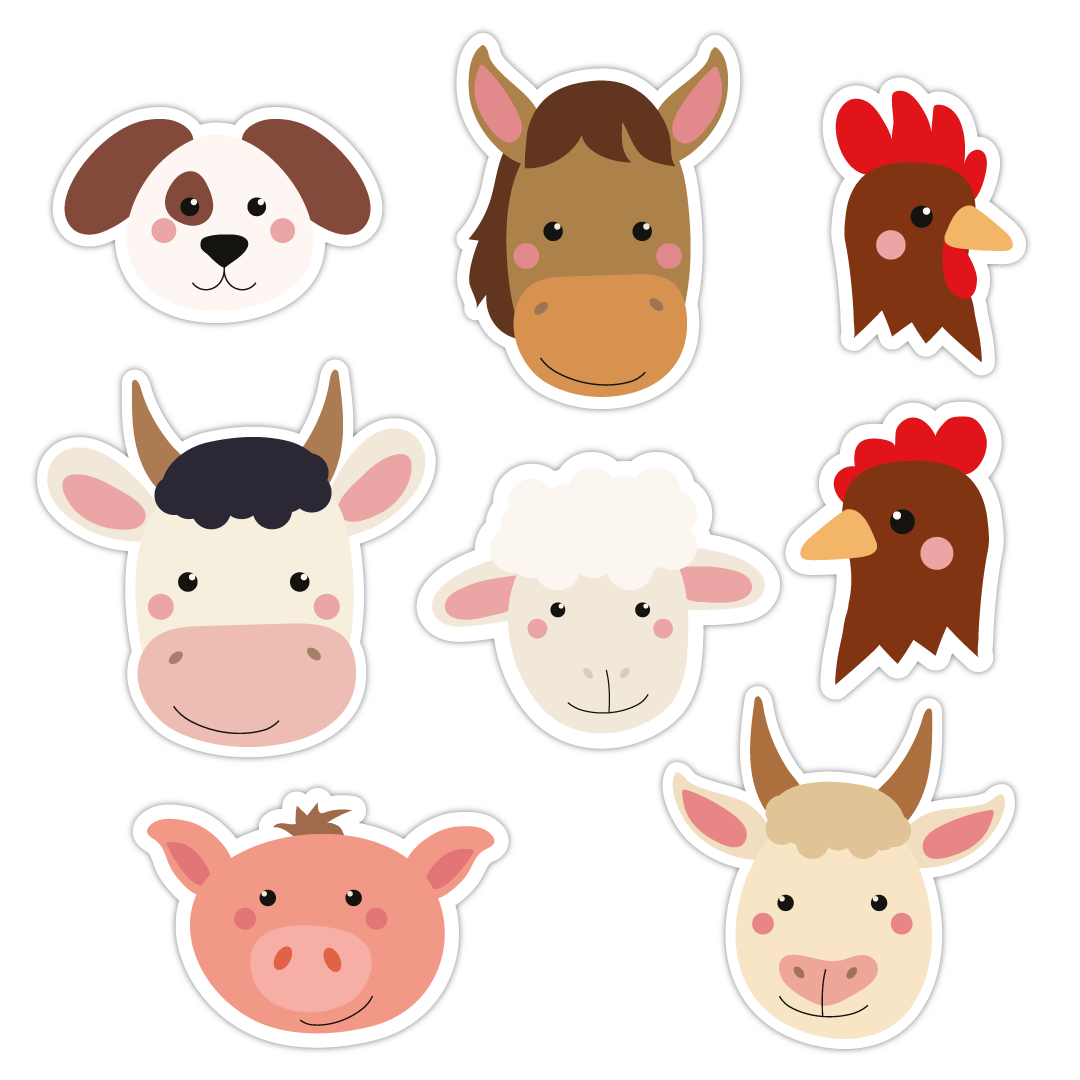 Set da 64 pezzi di coriandoli a forma di animaletti della fattoria (cane, gallo, gallina, pecora, capra, maialino, cavallo, mucca) sagomati, in cartoncino. Da spargere sul tavolo festa o da usare per decorare vari oggetti a tema fattoria.