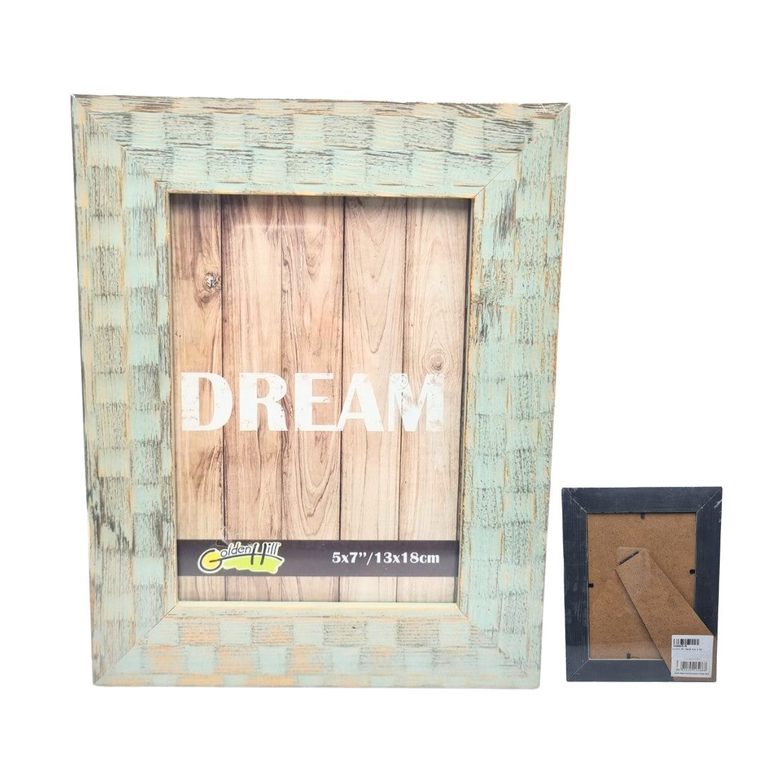 Cornice portafoto in legno verde antichizzato, fantasia quadrettata, da tavolo, Golden Hill.