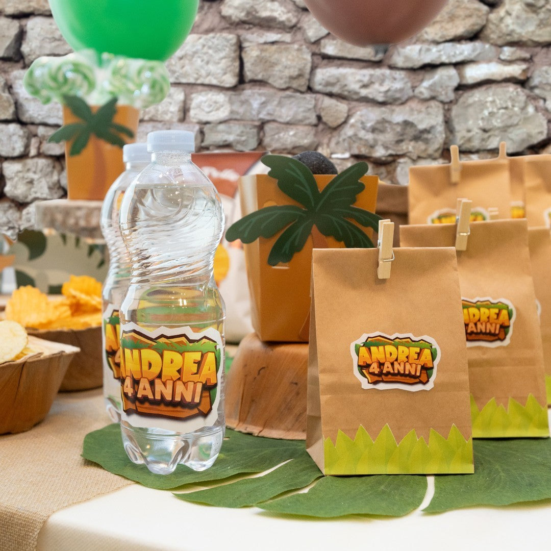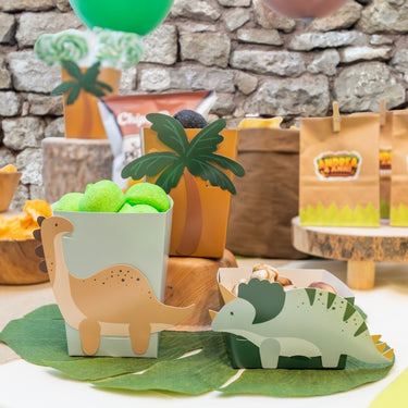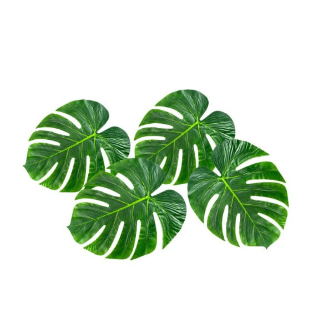 Set di 4 foglie di palma decorative da usare come sottopiatto o per arricchire il tavolo festa a tema dinosauri.