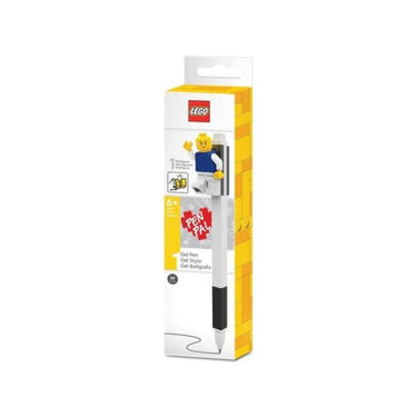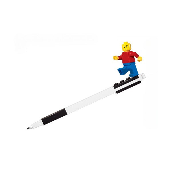 Penna gel LEGO® con mini figure, nera. Una parte della penna è una piastra LEGO.