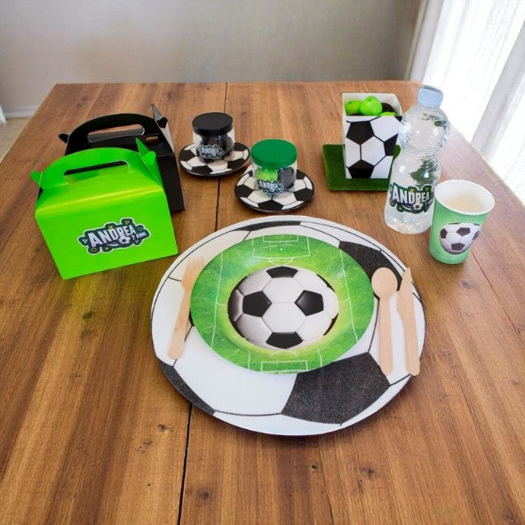Set da tre pezzi di erbetta sintetica ideali da usare come decorazioni per una festa a tema calcio.