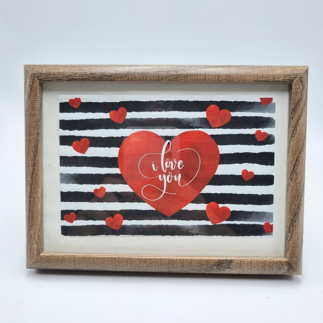 Portafoto in legno con stampa "I love you" e segnalibro cuore