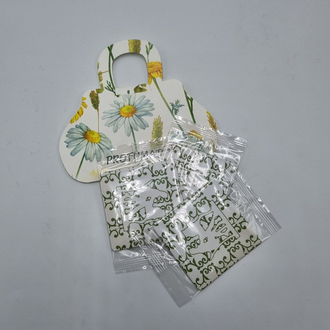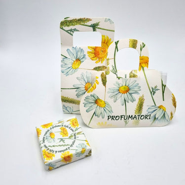 - borsetta in cartoncino con tre tavolette profumate, per cassetti e armadi "Olivo e Malva".
