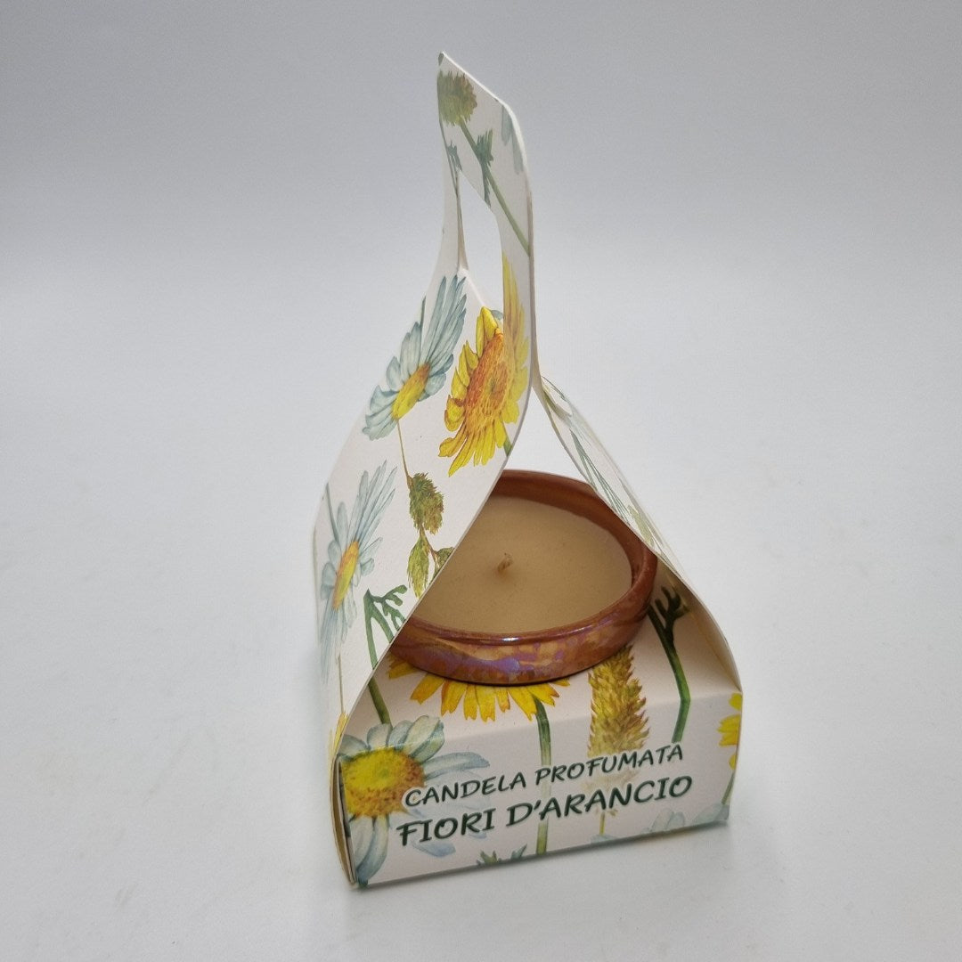 - candela profumata "Fiori d'arancio" con vasetto in ceramica (6 cm);