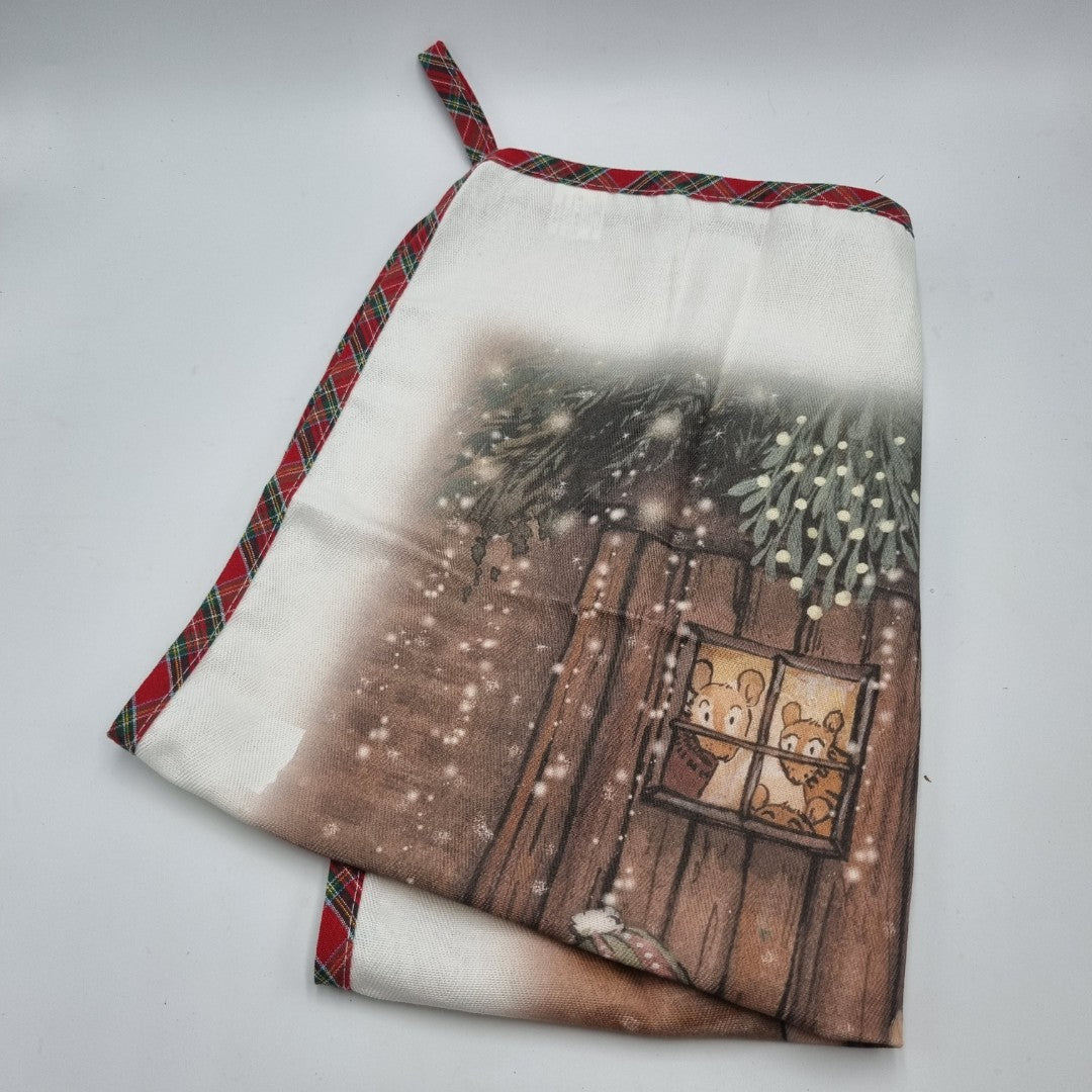 - strofinaccio in cotone con disegno natalizio e bordo scozzese (50 x 70 cm);