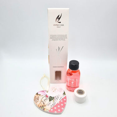 - profumatore 100 ml "Fiori di Magnolia" con tappo in legno (bastoncini inclusi);