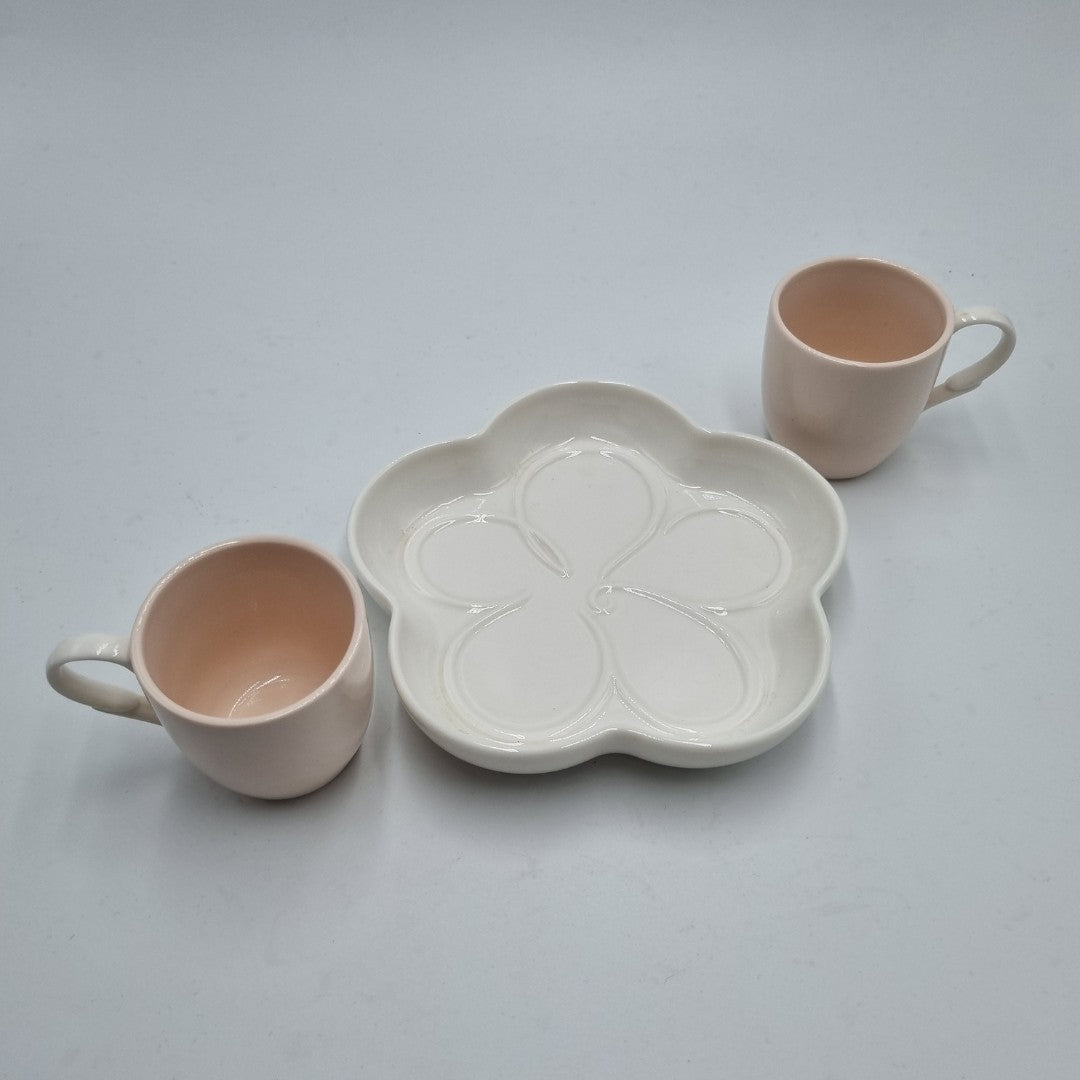 Set Wald di due tazzine da caffè, con vassoio a forma di fiore e zuccheriera abbinata. Porcellana.