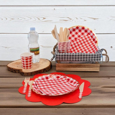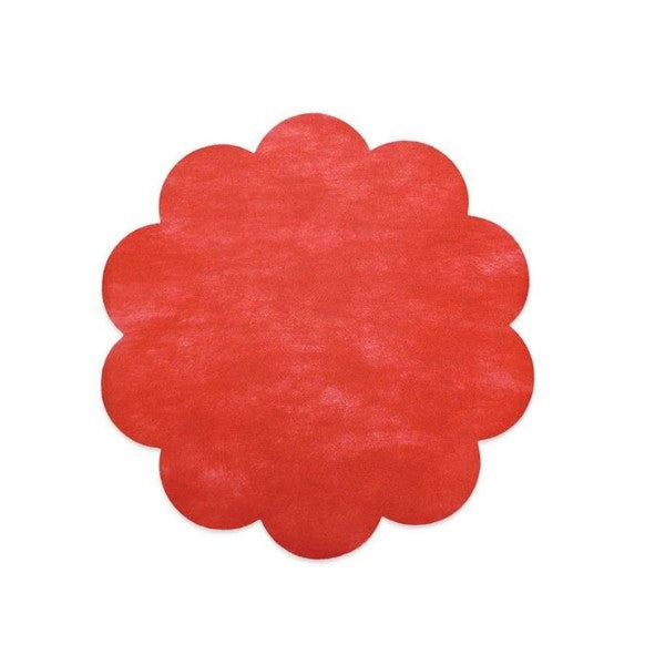 Tovaglietta a forma di margherita in TNT, rossa. Confezione da 20 pezzi.