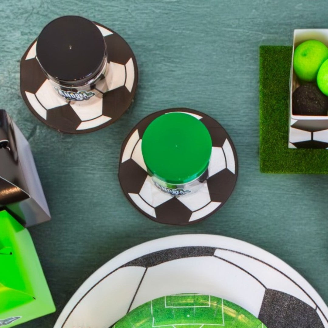 Confezione da 12 tovaglioli di carta, diametro 13,5 cm, a forma di pallone da calcio.