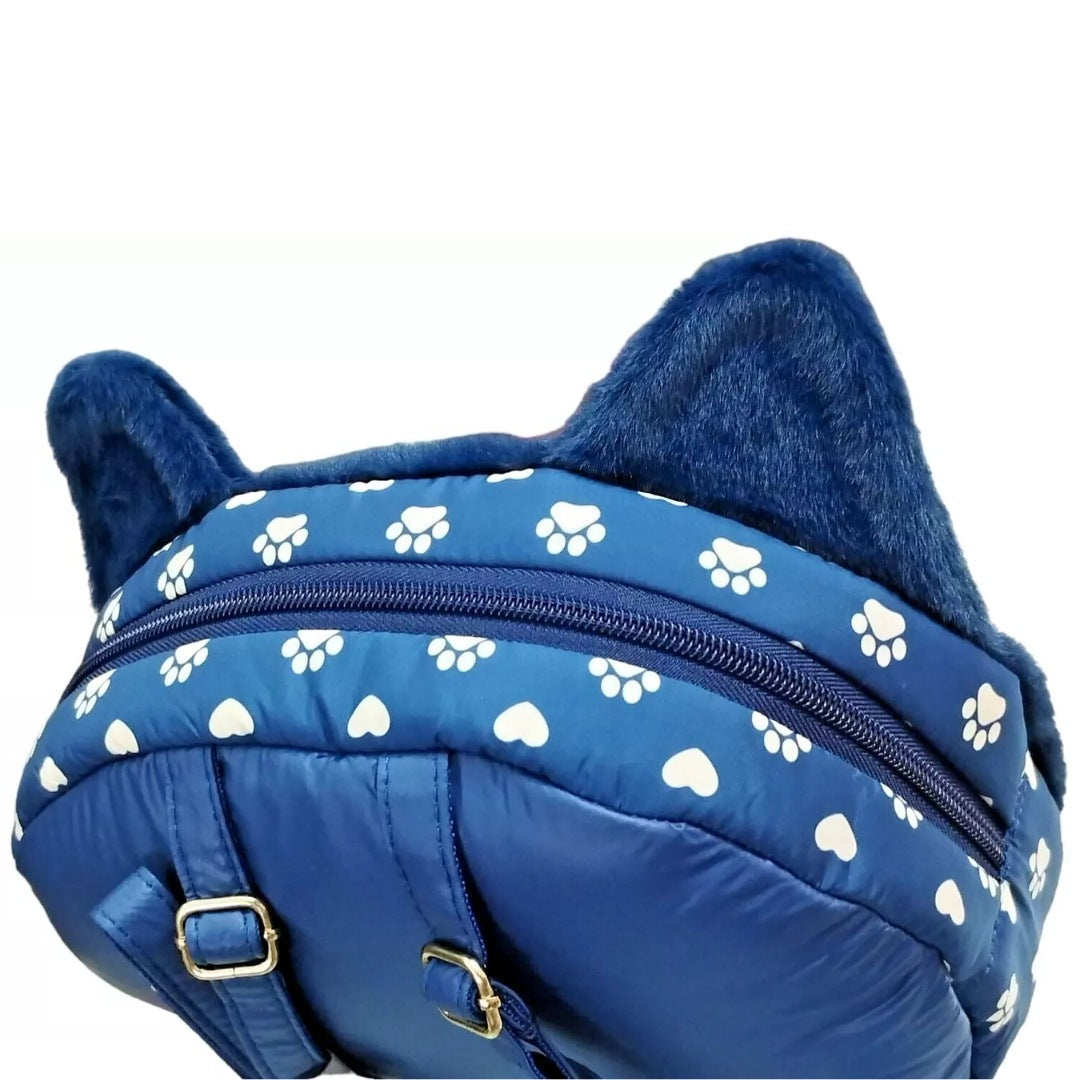 Zainetto "Camomilla Milano" a forma di gattino, in tessuto leggero e peluche.